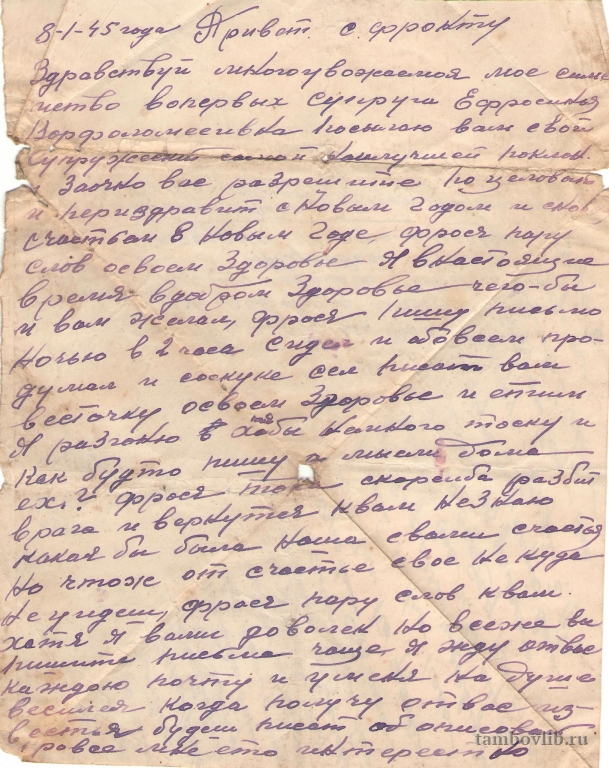 Письмо Жукова Федора Петровича жене Жуковой Ефросинье Варфоломеевне. Из семейного архива внучки Казанковой Татьяны Александровны.