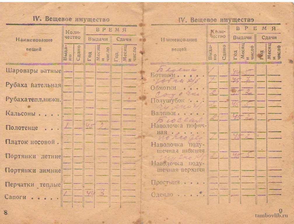 Красноармейская книжка Чурсиной Татьяны Петровны